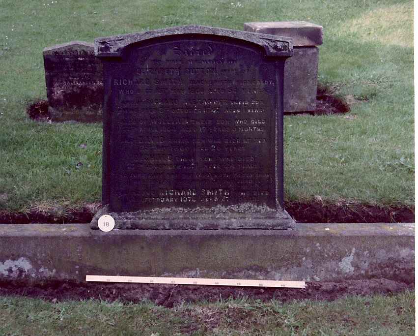 Inscription 2 | AGED 19 YEARS 6 MONTHS AND DAVID THEIR SON WHO DIED AT SEA 25 JULY 1866 AGED 26 YEARS, RICHARD THEIR SON WHO DIED 27 NOVEMBER 1871 AGED 24 YEARS THE LORD GAVE, AND THE LORD HATH TAKEN AWAY, BLESSED BE THE NAME OF THE LORD JOB 1,21. THE ABOVE RICHARD SMITH WHO DIED 14TH FEBRUARY 1878 AGED 67 YEARS |