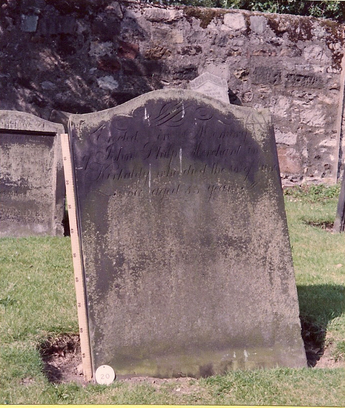 Inscription 1 | ERECTED IN MEMORY OF JOHN PHILP MERCHANT IN KIRKALDY WHO DIED THE 10TH OF JUNE 1806 AGED 53 YEARS |