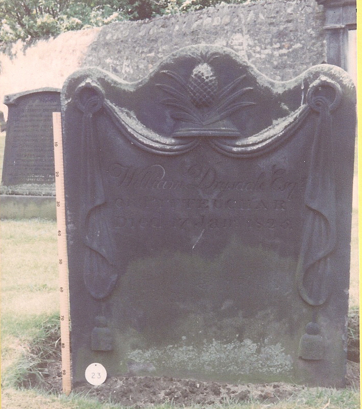 Inscription 1 | WILLIAM DRYSDALE ESQr. OF PITTEUCHAR DIED 17 JANy. 1825 |