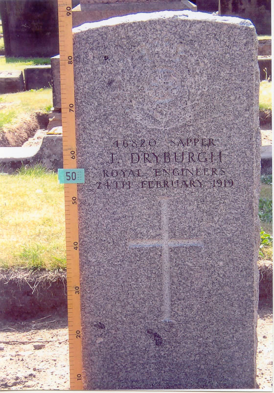 Inscription 1 | 46820 SAPPER J. DRYBURGH ROYAL ENGINEERS 24TH FEBRUARY 1919 |