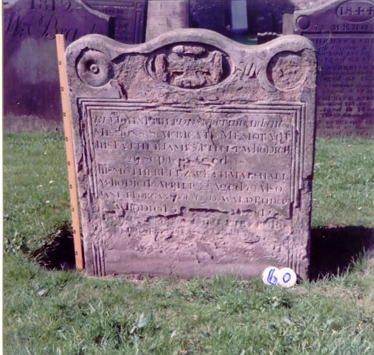 Inscription 2 | (from old record 167 as memorial badly flaked) NOTE: REV J PHILP WAS GRANDSON OF JAS. PHILP DEACON OF THE HAMMERMEN 1742-44. HE JOINED THE CONGREGATIONAL MINISTRY AND EMIGRATED TO SOUTH AFRICA - VARIOUS DESCENDANTS ARE MENTIONED IN "THE SCOTTISH GENEALOGIST". (Civic Society Plaque alongside memorial) |