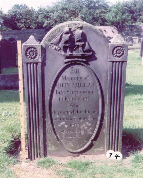 Inscription 1 | IN MEMORY OF JOHN MILLAR LATE SHIP-OWNER IN KIRKALDY WHO DEPARTED THIS LIFE ON THE 11TH DAY OF AUGUST 1809 AGED 65 YEARS |