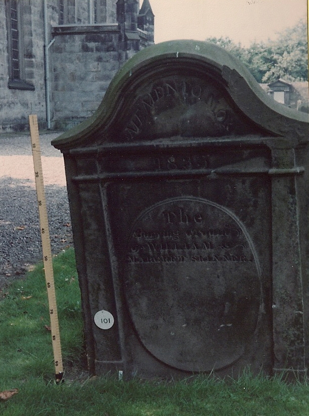 Inscription 1 | MEMENTO MORI 1835 THE BURYING GROUND OF WILLIAM & MARGRET SKINNER. |