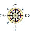 (2) : 1 North, 2 North East, 3 East, 4 South East, 5 South, 6 South West, 7 West, 8 North West