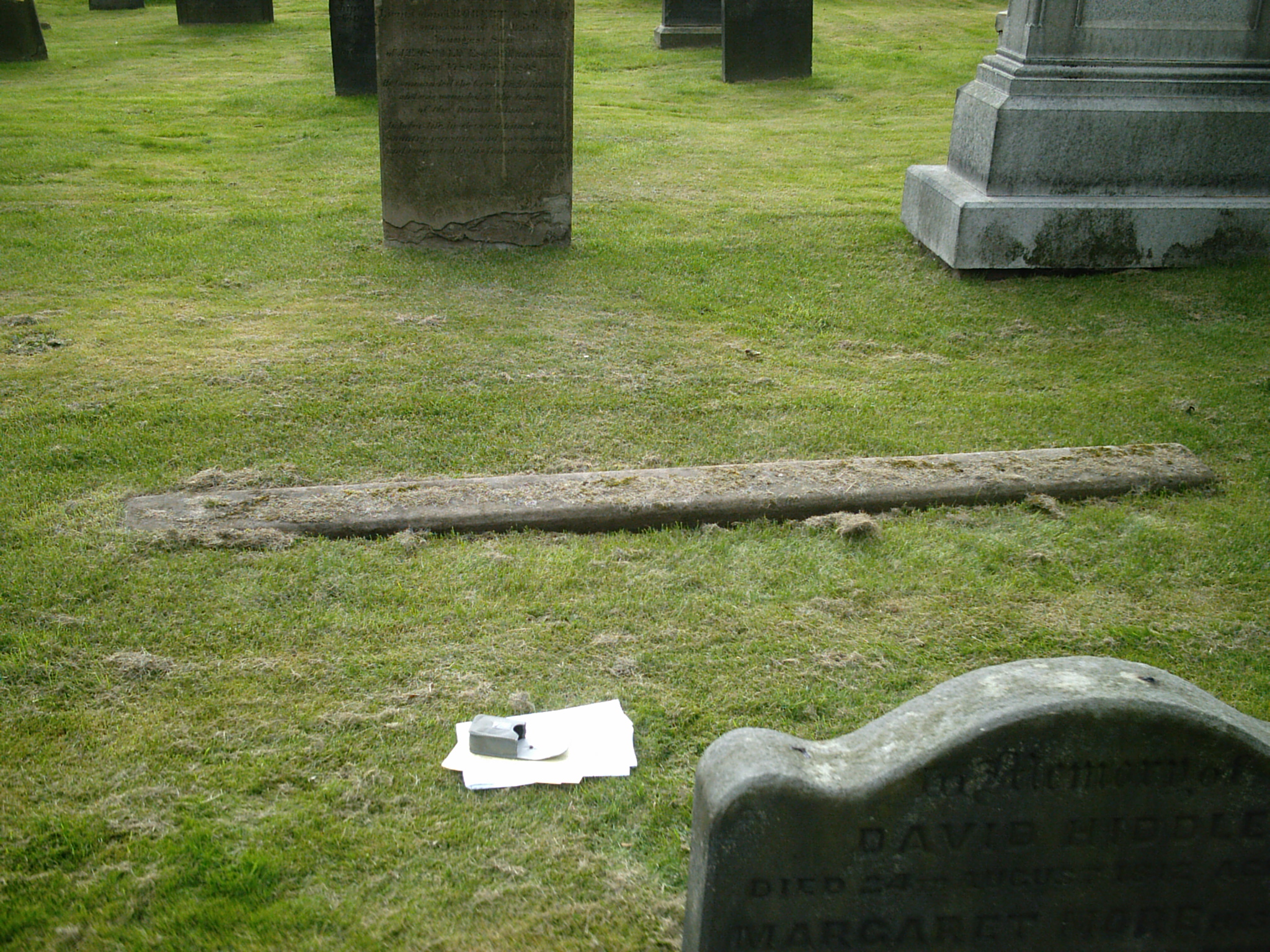 Inscription 2 | (flat stone behind, buried under grass and illegible. Could be connected?) |