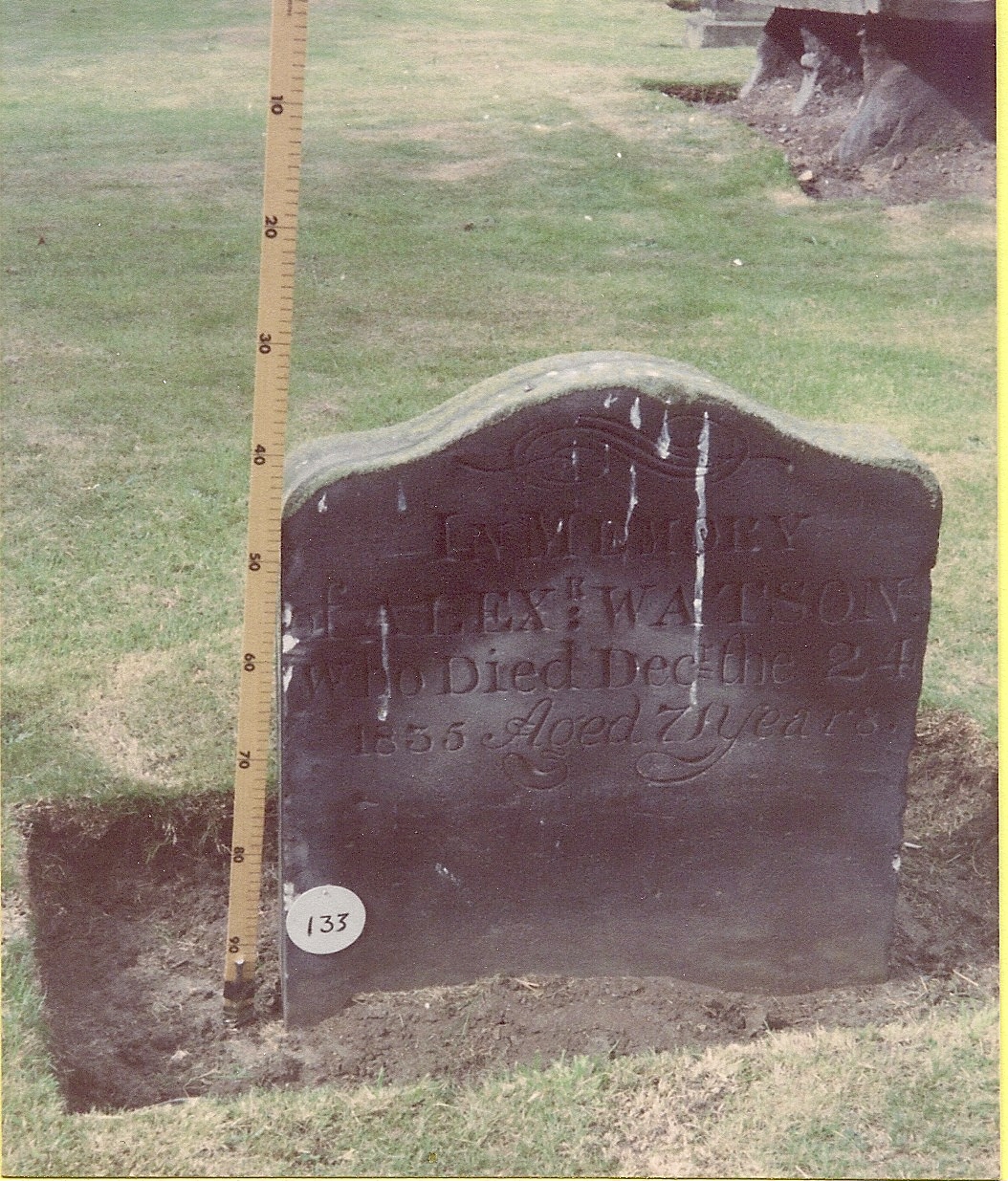 Inscription 1 | IN MEMORY OF ALEXR. WATSON WHO DIED DECR THE 24 1835 AGED 71 YEARS |
