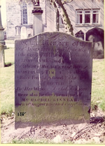 Inscription 2 | HIS WIDOW RACHEL KINNEAR HERE ALSO LIE THE REMAINS OF MRS RACHEL KINNEAR BORN 12TH AUGUST 1750 DIED 1ST SEPTR. 1835 |