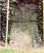 Inscription 2 | (AS PER OLD RECORD NO 34) (resting against south wall; heart; hourglass) (Jhon) (Melvi)ll (wright) (in) (Bog. . ) . . . Husband was to Eliz Hutton; he d 22.11.1684 41 |