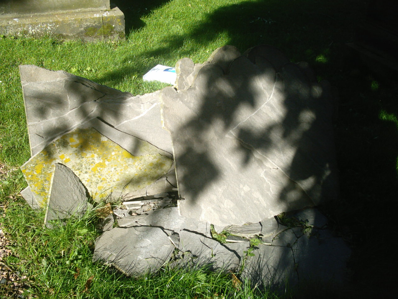 Condition of Monument (3) | 4 knocked over in 2008. 2 pieces, bottom half in ground, top leaning against it. Split into layers. |