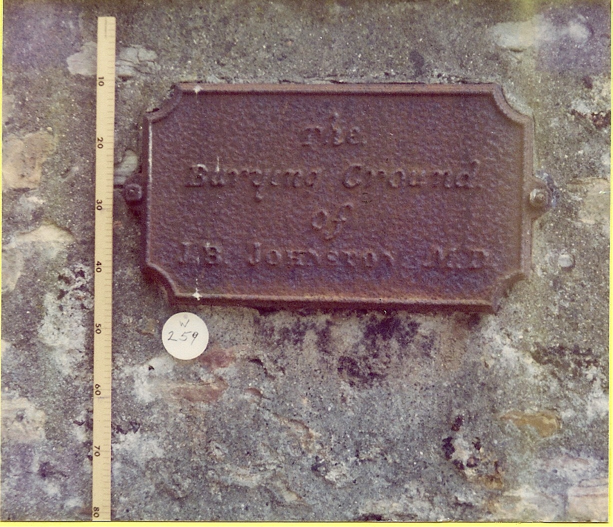 Inscription 1 | THE BURYING GROUND OF J. B. JOHNSTON M.D. |