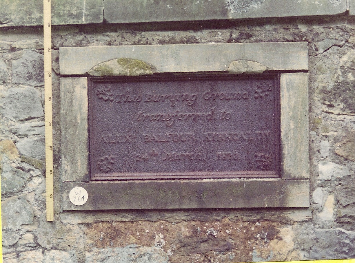 Inscription 1 | THIS BURYING GROUND TRANSFERRED TO ALEXR. BALFOUR, KIRKCALDY 24TH MARCH 1873 |