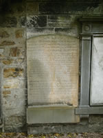 Inscription 2 | THIS DISTINGUISED OFFICER, OLDEST SURVIVING SON OF J T OSWALD ESQ, SERVED HIS COUNTRY DURING THE WARS OF THE FRENCH REVOLUTION. HE COMMANDED THE EXPEDITION WHICH TOOK SIX OF THE IONIAN ISLANDS FROM THE FRENCH AND WAS IN MANY OF THE ENGAGEMENTS DURING THE PENINSULAR WAR. AFTER AN ACTIVE LIFE HE SPENT THE EVENING OF HIS DAYS AT DUNNIKIER, BELOVED BY HIS FAMILY, RESPECTED AND ADMIRED BY ALL WHO KNEW HIM. OBLIT MDCCCXL AETAT. LXIX ALSO IN MEMORY OF CHARLOTTE HIS WIFE, ELDEST DAUGHTER OF THE REVD LORD CHARLES MURRAY AYNSLEY OF LITTLE HARLE TOWER, NORTHUMBERLAND. BORN 1795. DIED 1827 LEAVING A NUMEROUS FAMILY TO LAMENT THEIR EARLY LOSS. "BLESSED ARE THE DEAD WHICH DIE IN THE LORD" THIS STONE IS ERECTED BY THEIR SON J T OSWALD IN MEMORY OF HIS PARENTS, WHOSE REMAINS ARE INTERRED ALONG WITH AN INFANT DAUGHTER IN A VAULT UNDER PATHHEAD CHURCH. |